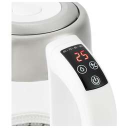 Максимальный объем 1.8 л Мощность 2200 Вт Нагревательный элемент скрытый Стильный стеклянный с металлическими вставками на базе, с регулировкой температуры и качественной контрольной группой. Украшение любого интерьера и функциональный прибор на вашей кухне. Качественная контрольная группа Strix- английский контроллер с дополнительной гарантией 10 000 циклов. Индикатор включения ДА Индикатор уровня воды ДА Фильтр от накипи ДА Автоматическое отключение ДА Регулировка температуры нагрева ДА Температурные режимы 4 шт Защита от включения без воды ДА Подсветка воды ДА Поддержание температуры воды ДА Звуковой сигнал при закипании ДА Подставка 360 градусов ДА имеет 4 настраиваемых температурных режима для разных сортов чая, кофе, настоек и компотов, приготовления детского питания и других бытовых нужд, + функция поддержания температуры. Полностью съемная крышка для удобство залива воды и очистки.