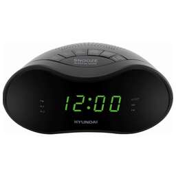 Бренд; HYUNDAI; Цвет товара; черный с зелеными цифрами; Тип; радиобудильник; Настройка частоты; цифровая; Особенности; От сети, двойное время, радио; Диапазон частот; FM; Динамики; 1; Тип элементов питания; От сети; Вес; 0.34 кг; Ширина; 1 мм