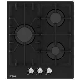 Газовая варочная поверхность, ширина 45 см, 3 газовые конфорки, электроподжиг, фронтальные чугунные решетки, материал поверхности - закаленное стекло, цвет - черный.