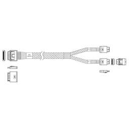 JPC Кабель P5022DR10800-1 Cable Slimline SASx8 74P (SFF8654, угловой RightAngle) -TO- 2x HDmSAS x4 (прямой Straight Type), L:80cm (C5443)
