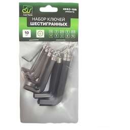 Набор состоит из 10-ти Г-образных шестигранных ключей, соединенных кольцом. Включает в себя комплект самых ходовых размеров инструмента. Предназначен для работы с соединениями с шестигранным шлицем. Состав набора: 1.5, 2, 2.5, 3, 3.5, 4, 5, 6, 8, 10 мм Профиль: шестигранный Материал: высокопрочная сталь