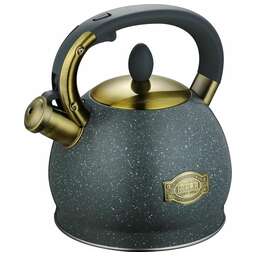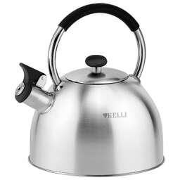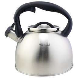 Металлический чайник со свистком; Объем: 2,5 л; Высококачественная нержавеющая сталь; Многослойное капсульное дно; Матовая полировка; Эргономичная ручка, не нагревается; Подходит для всех видов плит