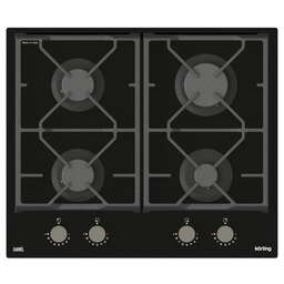 Газовая варочная панель из закаленного стекла шириной 60 см, 4 высокоэффективные конфорки, технология точной регулировки мощности пламени в 9-ти положениях Flame Control, автоматический электроподжиг, газ-контроль каждой конфорки, переднее расположение поворотных регуляторов, металлические регуляторы, цельные чугунные решетки, цвет - черное стекло