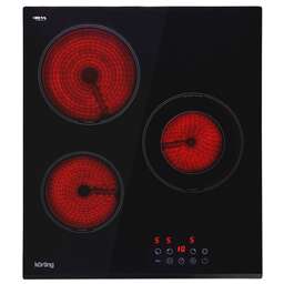 Электрическая варочная панель; Стеклокерамика, ширина 45 см. 3 зоны нагрева Hilight. Сенсорное управление. Двойная зона расширения, Таймер отключения для каждой зоны. Функция «Защита детей». Автоматическое отключение. Индикация остаточного тепла, LED индикация красного цвета. Цвет - черный. Дизайн рамки: передний скошенный край.