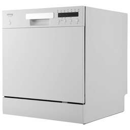 Отдельностоящая настольная посудомоечная машина; Габариты (ШxГxВ): 55х50х59,5 см; Класс энергопотребления: А+; Электронное управление; Дисплей с LED индикацией выбранной программы; 7 программ; 8 комплектов; Таймер отложенного старта 1-24 часов; Защита от протечек; Программа самоочистки; Функция дополнительной сушки; Функция “Защита детей”; Уровень шума: 49 дБ; Цвет: белый