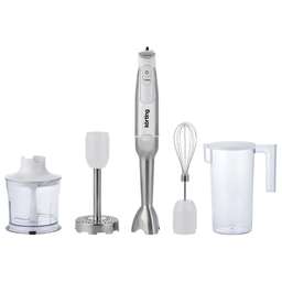 Блендер погружной. Контроллер скоростей с фиксированием (20 скоростей + Turbo). Скорость – до 15 000 об/мин. Технология Silence Balance – уровень шума менее 72 дБ. DMP - двойная защита двигателя (от перегрева, от перегрузки). Система вертикального хранения. Съемный блок лезвий – Ease Wash – для удобной очистки ножей. Насадки в комплекте: насадка – измельчитель (500 мл), насадка – венчик. Чашу измельчителя, кувшин, стальной венчик можно мыть в посудомоечной машине. Максимальная мощность 1 800 Вт.