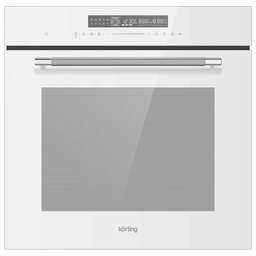 Духовой шкаф с электронным сенсорным управлением Touch Control, LED дисплей белого цвета Cold White, Утапливаемые поворотные регуляторы в цвет духовки, 9 режимов работы, Одноуровневые телескопические направляющие, дверца духового шкафа с двойным остеклением, система автоматического охлаждения, Автоматическое отключение, Эмаль легкой очистки серого цвета, Каталитическая очистка, в комплекте: Противень для выпечки, глубокий противень, Хромированная решетка, цвет: белое стекло + стеклянная поверхность ручки двери в цвет духовки