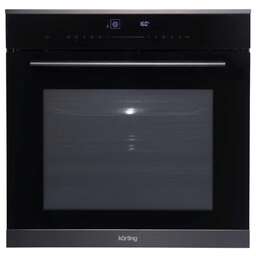 Духовой шкаф с сенсорным управлением VISION LED, панель управления - стекло, LED дисплей белого цвета, 12 режимов, утапливаемые поворотные регуляторы, объем духовки 77 л, двухслойное остекление, очистка камеры Steam cleaning, приготовление с паром Steam Extra, режим быстрого нагрева, функция "Гратен", автоматическое отключение, одноуровневые телескопические направляющие, эмаль легкой очистки, в комплекте: глубокий противень, универсальный противень и хромированная решетка, цвет: черное стекло