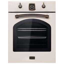 Духовой шкаф в ретро-дизайне, ширина 45 см, аналоговые часы в классическом стиле Frank Muller, таймера с функцией отключения, 9 режимов нагрева, объем духовки 45 л, телескопические направляющие на одном уровне, двухслойное остекление, каталитическая самоочистка, автоматическое отключение, в комплекте: 2 противня, хромированная решетка, цвет - слоновая кость; цвет ручек - бронза