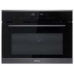Компактный духовой шкаф с функцией СВЧ, высота прибора 45 см, электронное сенсорное управление Full TouchControl, LЕD дисплей белого цвета Cold White, 10 режимов нагрева духовки, 4 режима СВЧ, включая 3 комбинированных режима; автопрограммы, электронный таймер отключения и отложенного старта, дверца духового шкафа с тройным остеклением, система автоматического охлаждения, автоматическое отключение, эмаль легкой очистки, Аксессуары: противень для выпечки с внутренней решеткой, хромированная решетка, стеклянный противень, цвет: черное стекло + черная нержавеющая сталь