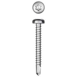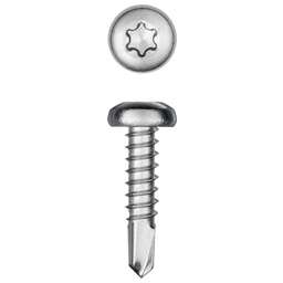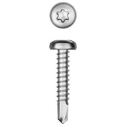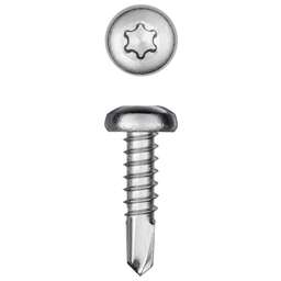 Саморезы с полукруглой головкой и сверлом изготовлены в соответствии со стандартом DIN7504N из нержавеющего прутка. Легирование никелем, хромом и марганцем полностью сохраняет аустенитную структуру кристаллической решетки, благодаря чему нержавеющие саморезы обладают хорошей прочностью и пластичностью, немагнитными свойствами и невысокой электропроводностью. Саморезы легко вкручиваются обычным шуруповертом или отверткой. Преимущества Устойчивость к воздействию неблагоприятных условий - повышенной влажности, различным агрессивным средам (в т.ч. кислотным), большим перепадам температур и т.п. Повышенная прочность и коррозионостойкость Аустенитная сталь А2 сохраняет свои прочностные свойства в широком диапазоне температур: от -200°С до +600°С, хорошо подвергается механической и термической обработке, а также сварке. Износостойкий шлиц TORX предотвращает срывание биты при закручивании и обеспечивает большой крутящий момент Полукруглая головка с плоской площадкой обеспечивает плотное прилегание конструкции к основанию и возможность использования шайбы для усиления давления на опорную поверхность Улучшенная геометрия сверла обеспечивает быстроту и легкость сверления в листовых материалах Использование Для соединения элементов конструкций из алюминия, дерева и пластика без предварительного сверления. Для соединения элементов из стали рекомендуется предварительно просверлить отверстие необходимого диаметра.