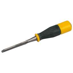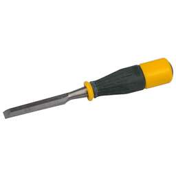 Профессиональный высокопрочный инструмент для выборки гнезд, пазов и отверстий, строгания, подрезки плоскостей и выступов, обработки криволинейных поверхностей, зачистки кромок и торцов, снятия фасок, неглубокого долбления Преимущества Стамеска оснащена двухкомпонентной рукояткой из ударопрочного пластика с рифленой резиновой накладкой Лезвие стамески изготовлено из высококачественной инструментальной стали методом ковки и упрочнено методом индукционной закалки на 2/3 длины до твердости 65 HRC Сквозной стержень и металлический затыльник делают возможным применение стамески в качестве долота Режущая кромка заточка Использование для выборки гнезд, пазов и отверстий, строгания, подрезки плоскостей и выступов, обработки криволинейных поверхностей, зачистки кромок и торцов, снятия фасок, неглубокого долбления. Мате-риал изделия: металл, пластик
