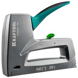 Профессиональный мощный алюминиевый степлер с ударным механизмом рессорного типа с увеличенной мощностью, удара без отдачи Преимущества 2 в 1 GRAND - мощный алюминиевый профессиональный степлер +75% увеличенная мощность. Leaf-Spring мощный ударный механизмом рессорного типа, удар без отдачи. Power-Control двухпозиционная регулировка силы удара Fast-Load ускоренная загрузка скоб снизу. Quick-Lock быстрая система фиксации рукоятки. Использование 140 (G/11/57) для крепления нетканых материалов, пленок, уплотнителей, бумаги и картона к поверхности из дерева, пластика, двп и т.д. Широкая спинка скобы не прорезает прикрепленный материал. 300 (E|J|8|47) прочное скрепления заготовок из дерева, пластика, двп и т.п. между собой.
