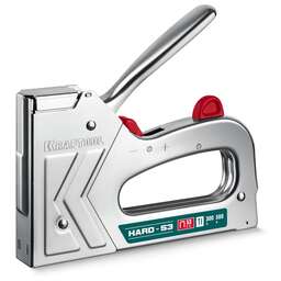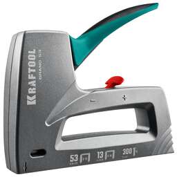 Профессиональный мощный алюминиевый степлер с ударным механизмом рессорного типа с увеличенной мощностью, удара без отдачи Преимущества 3 в 1 GRAND - мощный алюминиевый профессиональный степлер +75% увеличенная мощность. Leaf-Spring мощный ударный механизмом рессорного типа, удар без отдачи. Power-Control двухпозиционная регулировка силы удара Fast-Load ускоренная загрузка скоб снизу. Quick-Lock быстрая система фиксации рукоятки. Использование 53 (A|3|11) для крепления тканных материалов(ткани, обивки, холста) и материалов не несущих высоких нагрузок к поверхности из дерева, ДВП, пластика и т.п. Тонкая проволока не повреждает волокна материалов. 13 (H I 37 I 19) для крепления тонких материалов и материалов не несущих высоких нагрузок 300 (E|J|8|47) прочное скрепления заготовок из дерева, пластика, двп и т.п. между собой.
