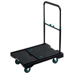 Пластиковая платформенная тележка KRAFTOOL универсальное приспособление для перевозки различных грузов как дома, так и на предприятии. Преимущества Складная - удобна в хранении и перевозке. Широкая платформа подходит для габаритных грузов Телескопическая рукоятка легко регулируется по высоте Маневренность обеспечивается парой поворотных колёс Использование Применяется для перевозки различных грузов. Подходит для применения в быту, магазинах, складах, оптовых базах и т.п.