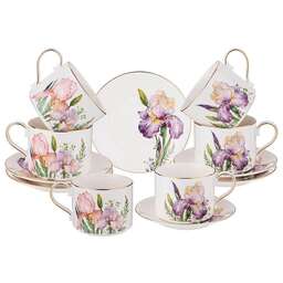 TM Lefard коллекция "Ирис" - это эксклюзивная коллекция нежных ирисов на модных формах с золотой окантовкой. Первый цветок ириса появился где-то в юго-восточной Азии в древние времена. Ирис был так красив, что им любовались и звери, и птицы, и воды, и ветры. Они разнесли семена этого необычного цветка по всему миру. И теперь благодаря им мы любуемся разнообразием этих красивых цветов. Качественный тонкостенный фарфор, "живые" натуральные цвета декора, красочная упаковка делают предметы коллекции прекрасным подарком к любому случаю. Продукция сертифицирована. Безопасна для контакта с пищевыми продуктами. Нельзя ставить в микроволновую печь, не рекомендуется мыть в посудомоечной машине. Комплектность: чашка 300 мл 6 шт., блюдце 14,2 см 6 шт.
