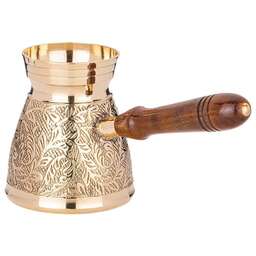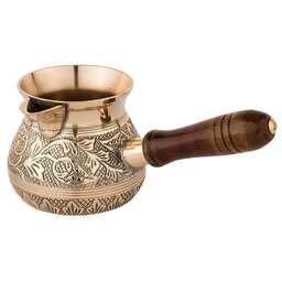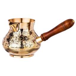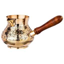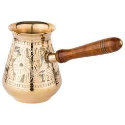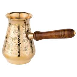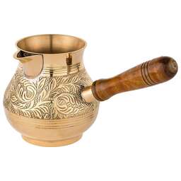 Несмотря на появление огромного количества кофеварок и кофемашин, турки не теряют своей популярности у любителей кофе. Напиток, сваренный в турке, получается вкуснее и ароматнее, чем в кофеварке. При этом данные изделия не только прекрасно подходят для ежедневного использования, но и являются отличным элементом декора интерьера.<br /> <br /> Пожалуй, самыми популярными турками являются латунные. Индия издавна славится своими искусными мастерами по обработке металлов, в частности латуни. Традиции и секреты бережно передаются из поколения в поколение и находят свое воплощение в прекрасных изделиях небольших «домашних» мастерских. <br /> <br /> Основные преимущества:<br /> • Эксклюзивность (каждое изделие по своему уникально благодаря ручной работе – минимум машинной обработки, роспись и чеканка делается вручную)<br /> • Съемная деревянная ручка (удобно мыть и хранить)<br /> • Можно использовать на газовой, электрической и стеклокерамической плите
