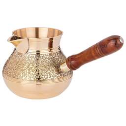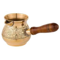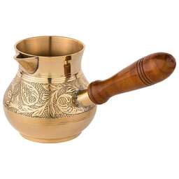 Несмотря на появление огромного количества кофеварок и кофемашин, турки не теряют своей популярности у любителей кофе. Напиток, сваренный в турке, получается вкуснее и ароматнее, чем в кофеварке. При этом данные изделия не только прекрасно подходят для ежедневного использования, но и являются отличным элементом декора интерьера.<br /> <br /> Пожалуй, самыми популярными турками являются латунные. Индия издавна славится своими искусными мастерами по обработке металлов, в частности латуни. Традиции и секреты бережно передаются из поколения в поколение и находят свое воплощение в прекрасных изделиях небольших «домашних» мастерских. <br /> <br /> Основные преимущества:<br /> • Эксклюзивность (каждое изделие по своему уникально благодаря ручной работе – минимум машинной обработки, роспись и чеканка делается вручную)<br /> • Съемная деревянная ручка (удобно мыть и хранить)<br /> • Можно использовать на газовой, электрической и стеклокерамической плите<br /> • Экологически чистый материал