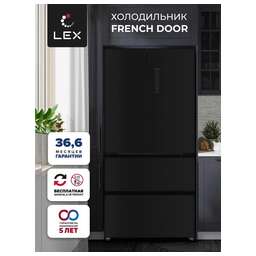 LEX Холодильник трехкамерный LFD575BxID French Door, инверторный черная сталь