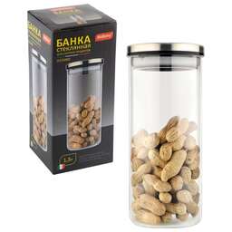 Стеклянная банка для сыпучих продуктов Объем банки: 1.3 л Банка оснащена крышкой с вставкой из полипропилена, обеспечивающей плотное прилегание крышки. В такой банке удобно хранить, крупы, макароны, печенье и многое другое. Функциональная и практичная, такая банка станет незаменимым аксессуаром на вашей кухне. Натрий-кальций силикатное стекло. Толщина 4 мм. Коэффициэнт линейного расширения — 3.0. Упаковка: цв вкладыш