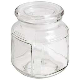 Стеклянная банка для сыпучих продуктов с фигурной стеклянной крышкой, линейка — LATTINA, объем: 0,9 л, тм Mallony Толщина стенок — 3,2 мм Материалы — стекло (soda lime glass — натрий-кальций-силикатное стекло), полипропилен. Коэффициэнт линейного расширения — 3.0. Упаковка: коробка с ячейками, стикер.