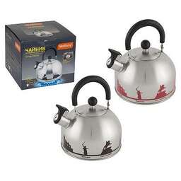 Чайник из нержавеющей стали со свистком Объём: 2,5 литра Материал: нержавеющая сталь. Капсульное дно. Зеркальная полировка корпуса Со свистком Подходит для всех типов плит. Не рекомендуется мыть в посудомоечной машине. Упаковка: инд цветная коробка.