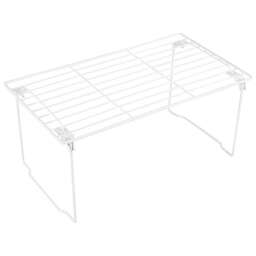 Полочка — подставка поможет сэкономить место на вашей кухни. Позволяет организовать многоуровневое хранение. Может быть использована на рабочей поверхности или в шкафу. Изготовлена из металл с антискользящим виниловым покрытием (полочка не ржавеет и не пылится, что значительно увеличивает срок службы). Благодяря складной конструкции ее удобно хранить (занимает минимум места). Размер: 39,5*22,8*18 см Цвет: белый Материал: металл с виниловым покрытием