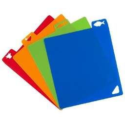 Набор досок 4 шт Размер: 32,5*27 см. Матерал: пластик Упаковка: п/э пакет с биркой - двухсторонняя рабочая поверхность; - не впитывает запахи; - леко сгибается; - не тупит ножи