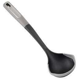 Ложка из нейлона с цветной ручкой из TPR, серия Novita, тм Mallony Цвет ручки — зеленый, цвет рабочей части — серый. Материалы: нейлон, TPR Упаковка: цветная подложка. Предназначена для помешивания блюд во время приготовления.