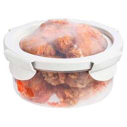 Контейнер пищевой круглый Прочная эластичная силиконовая крышка позволяет поместить в контейнер больше продуктов. Надежный замок защищает от случайного открытия. Размер: 13,5*13,5*6,5 см. Объем: 500 мл Вес: 70 гр Можно мыть в посудомоечной машине Можно использовать в СВЧ Можно использовать в морозильной камере Материал: полипропилен, силикон
