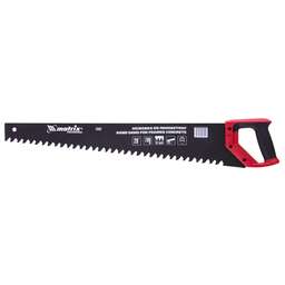 Ножовка по пенобетону Matrix 23380 с полотном длиной 500 мм, с защитным покрытием, с твердосплавными напайками на зубьях и 2-компонентной рукояткой, предназначена для распиливания пеноблоков. Зубья с шагом 38 мм имеют напайки из карбида вольфрама, заточенные под специальным углом, что обеспечивает эффективность работы с твердым материалом. Ножовка используется во время строительства различных сооружений. Преимущества Прочность — полотно из пружинной стали 65Mn толщиной 1,5 мм выдерживает повышенные нагрузки. Высокий ресурс — твердость зубьев составляет 90-92 HRC, поэтому рабочая кромка долго сохраняет режущие свойства. Защита от коррозии и увеличенная скорость распиловки — на поверхность полотна нанесено тефлоновое покрытие. Надежная конструкция — полотно закреплено в рукоятке при помощи 3 винтов. Комфортная работа — эргономичная двухкомпонентная рукоятка удобно ложится в руку. Гарантированное качество — ножовка изготовлена на японском оборудовании по современной технологии.