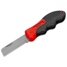 Складной нож электрика Matrix 78987 с прямым лезвием и эргономичной двухкомпонентной рукояткой используется для рассечения проводов и снятия с них изоляции. Прямое лезвие длиной 60 мм удобно для работы в стесненных условиях. Инструмент предназначен для электромонтажных работ, подходит для бытового применения. Преимущества Долговечность — режущее полотно из нержавеющей стали толщиной 2,5 мм устойчиво к повреждениям и коррозии. Комфортная и безопасная работа — двухкомпонентная пластиковая рукоятка с резиновыми вставками и подпальцевыми выемками не выскальзывает из ладони. Удобное хранение и транспортировка — инструмент имеет складную конструкцию, в рукоятке предусмотрено отверстие для подвешивания на крючок или гвоздь.
