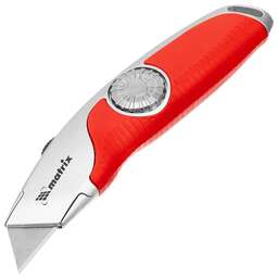 Нож Matrix 78926 с выдвижным трапециевидным лезвием и эргономичной двухкомпонентной рукояткой эффективно справляется с резкой бумаги, картона, кожи и других нетвердых материалов. Он станет незаменимым помощником на строительной площадке, на кухне, в офисе. Складная конструкция инструмента делает его универсальным, а также повышает удобство и безопасность эксплуатации. Преимущества Трехуровневая подача лезвия позволяет выбрать необходимую длину в зависимости от выполняемых работ и типа материала. Корпус ножа изготовлен из цинкового сплава, поэтому устойчив к коррозии. Ролик-фиксатор позволяет быстро заменить лезвие без необходимости его разборки. Нож оснащен эргономичной рукояткой с обрезиненным покрытием, что предотвращает его проскальзывание и обеспечивает удобство работы. К ножу прилагаются 3 дополнительных лезвия, поэтому их не придется докупать.