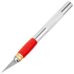 Нож Matrix 78855 с двухкомпонентной рукояткой и 5 запасными лезвиями, используется для дизайнерских работ: фигурного вырезания, изготовления мелких декоративных элементов. Он эффективно справляется с резкой бумаги и обоев, позволяя получить художественный результат. Преимущества Лезвие в форме пера выполнено из углеродистой стали 60, закалено и заточено, поэтому долго сохраняет остроту. Специальный защитный колпачок и выдвижное лезвие повышают безопасность транспортировки и эксплуатации. В комплекте с ножом идут 5 запасных лезвий, поэтому их не придется покупать дополнительно. Корпус выполнен из алюминия с нескользящей резиновой вставкой для удобства работы.