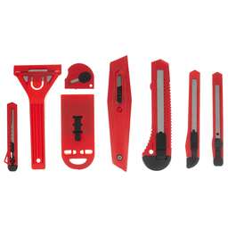 Набор Matrix 78991 состоит из 4 ножей с выдвижными лезвиями шириной 9 мм, 2 ножей с лезвиями 18 мм, а также 2 скребков с выдвижным и фиксированным лезвиями шириной 40 и 52 мм соответственно. Ножи используются для резки картона, бумаги, обоев и других мягких материалов. С помощью скребков можно легко удалить засохшую краску со стекла или кафеля. Набор будет полезен во время ремонта, а также пригодится дома или в офисе. Преимущества Прочность и долговечность — лезвия изготовлены из высокоуглеродистой стали 60. Регулировка рабочей длины полотна — у каждого инструмента с выдвижным лезвием имеется фиксатор. Быстрое восстановление режущей способности — у сегментированных полотен можно отламывать затупившиеся сегменты. Безопасное использование — у ножей с лезвиями шириной 9 мм имеется съемная заглушка в хвостовой части для обламывания сегментов. Возможность осмотреть товар перед покупкой — набор поставляется в удобной блистерной упаковке.