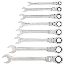Набор Matrix 15422 включает 8 комбинированных ключей из стали CrV, размером 6-19 мм, с покрытием «полированный хром», которые пригодятся во время ремонтных работ дома или в гараже. С их помощью можно быстро монтировать и демонтировать крепежные элементы. В набор входят инструменты основных типоразмеров, позволяющие эффективно решать поставленные задачи.ПреимуществаВысокая деформационная стойкость — ключи изготовлены из хромованадиевой стали, а рабочие части закалены до твердости 45 HRC.Защита от разрушения — полированное хромоникелевое покрытие предотвращает образование коррозии.Аккуратная работа — накидные части с 12-гранным профилем охватывают всю поверхность крепежа, уменьшая риск деформации его граней.Комфортная работа в ограниченном пространстве — угол наклона кольцевых зевов относительно плоскости инструментов составляет 15°, что делает монтаж крепежа более удобным.Удобный пластиковый держатель — ключи не потеряются во время хранения и транспортировки.