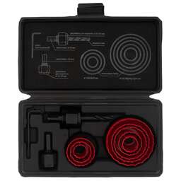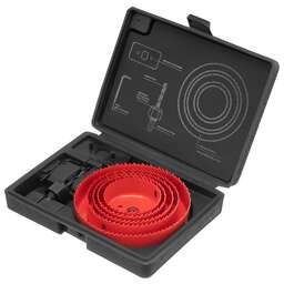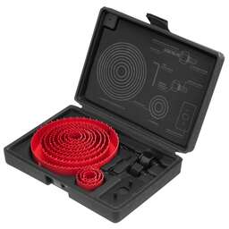 Набор кольцевых пил Matrix 70472 из 12 предметов предназначен для работы по дереву и включает в себя коронки диаметром 19-127 мм. Они устанавливаются на электродрель и служат для выпиливания круглых отверстий глубиной до 27 мм в древесине, фанере, гипсокартоне, ДСП, ДВП и пластике. Малая и большая державки облегчают установку пил разного диаметра. Набор пригодится во время ремонта — с его помощью можно прорезать отверстия под розетки, выключатели, светильники и трубы. Преимущества Долговечность — кольцевые пилы изготовлены из закаленной высокоуглеродистой стали, прочной и устойчивой к механическим нагрузкам. Высокая производительность — зубья коронки разведены в разные стороны, что обеспечивает эффективный отвод стружки и высокую скорость сверления. Быстрый и чистый рез — опорное основание исключает проворот коронки во время сверления. Простая центровка — в комплект входит центрирующее сверло, позволяющее получать ровные отверстия. Надежная фиксация сверла — в комплекте имеется шестигранный ключ 2,5 мм, облегчающий установку сверла в державку. Удобное хранение и транспортировка — набор поставляется в пластиковом кейсе с ложементами для отдельных предметов.
