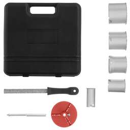 Кольцевая пила Matrix 70470 состоит из держателя и коронок диаметром 60-67-74-81-95 мм, позволяющих вырезать круглые отверстия глубиной до 1,5" в древесине, ДВП и ДСП. Устанавливается на ручную или электрическую дрель, не требует специальных навыков использования. Пила необходима для проведения работ по выводу труб через перегородки, установке осветительных систем, розеток и выключателей. Преимущества Прочность — режущие полотна изготовлены из среднеуглеродистой стали 45. Удобная центровка — в комплект поставки входит направляющее сверло. Быстрая подготовка к работе — нужно установить в паз коронку требуемого размера, обозначения диаметров пазов нанесены на корпус держателя. Удобное хранение — по окончании работ все полотна вставляются в держатель.
