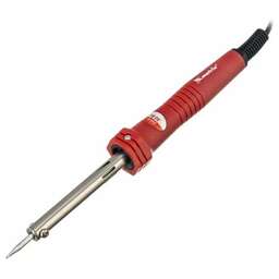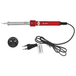 Паяльник Matrix 913043, 220 В, 30 W, с корпусом из пластика ABS, индикатором и медным наконечником с долговечным гальваническим покрытием, имеет класс защиты 1 и используется для пайки микрочипов, транзисторов, проводки и электросхем. Поставляется с припоем в пластиковой тубе, поэтому полностью готов к работе. Благодаря нихромовой спирали и корпусу из ударопрочного ABS-пластика паяльник устойчив к повреждениям и рассчитан на длительный срок службы. Конусовидное жало удобно для прецизионной пайки. Прибор пригодится радиолюбителям, автоэлектрикам, а также будет полезен в быту.ПреимуществаЖало быстро нагревается, т.к. изготовлено из меди.Рабочая поверхность защищена от коррозии хромированным покрытием, которое к тому же улучшает прилипание припоя.Нагретый паяльник можно разместить на подставке, имеющейся в комплекте.Можно легко определить, что прибор включен в сеть, т.к. при наличии напряжения срабатывает световой индикатор.Наконечник при необходимости можно заменить, поскольку он съемный.Продолжительная работа с паяльником не вызывает усталость благодаря удобной пластиковой рукоятке с мягкой накладкой.Инструмент безопасен в использовании, т.к. ему присвоен класс защиты 1, а характеристики соответствуют требованиям технических регламентов Таможенного союза 004/2011 и 0020/2011.