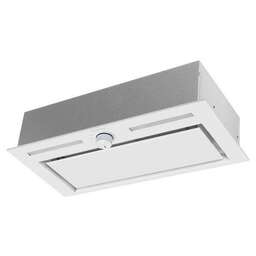 Вытяжка встраиваемая. Цвет белый. Габариты В/Ш/Г 16,7/59,8/29,6см. Режимы работы: отвод, рециркуляция. Тип управления электронное. Тип переключателей кнопки. Количество скоростей 3. Периметрическая система всасывания P.A.S. Тип освещения галогеновое. Жировой фильтр алюминиевый. Антивозвратный клапан. Производительность, 850куб м/час. Класс энергопотребления В. Потребляемая мощность,190 Вт. Уровень шума, 48дБ.