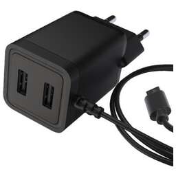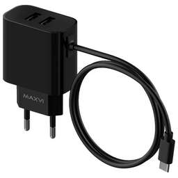 MAXVI CHL-242T 2.4A, with Type-C cable, 2хUSB, цвет: черный
