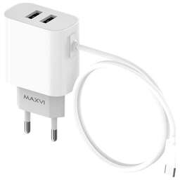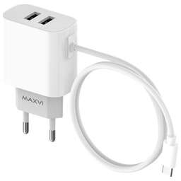 MAXVI CHL-242T 2.4A, with Type-C cable, 2хUSB, цвет: белый