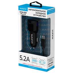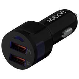 MAXVI CCM-522 black 5.2A, 2USB, QC3.0, цвет: черный, подсветка: синяя