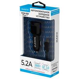 MAXVI CCM-522 Plus T black 5.2A, 2USB, QC3.0, цвет: черный, подсветка: синяя