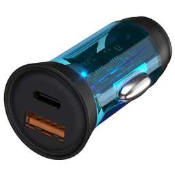 Универсальный автомобильный адаптер с 2 USB разъемами, входное напряжение: 12-24В. Выходное напряжение: 5В, 9-12В. Выходной ток на порт: 2.1A, 3.1А. Выходная мощность 28Вт. Поддержка быстрой зарядки QC3.0, Цвет: черный, подсветка синяя. Кабель Type-C в комплекте.