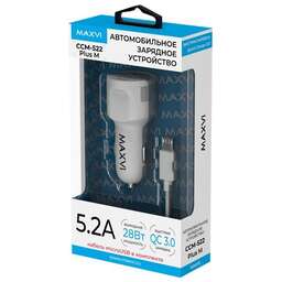 MAXVI CCM-522 Plus M white 5.2A, 2USB, QC3.0, цвет: белый, подсветка: синяя