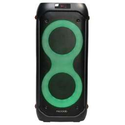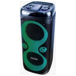 Bluetooth: 5.0; Выходная мощность: 33 Вт при среднеквадратичной, 135 Вт при максимальной мощности; Встроенный аккумулятор: литиевая батарея 7,4 В / 4500 мАч; Время работы от 1 заряда: около 6 часов (при 60% громкости); Время зарядки: около 2,5 часов; Частотная характеристика: 40 Гц - 20 кГц; Сигнал/шумоподавление: 85 дБ; КОЛОНКИ: Мембрана НЧ динамика: Двойной 8”, Мембрана ВЧ динамика: 1,5”; РАЗЪЁМЫ: Входы: Bluetooth, Aux, USB, MicroSD, FM-радио; Входы для микрофонов: 2; Входное питание: DC 9V 1.5A (адаптер); Пульт ДУ; Размеры: 271 x 268 x 616 мм; Вес: 7,2 кг
