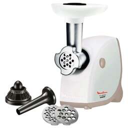 MOULINEX ME 684832 мясорубка мощность номинальная 800 Вт,максимальная 2000 Вт, перерабатывает 2.6 кг/мин насадка-терка насадка для шинковки насадка для приготовления колбас насадка для кеббе корпус из пластика отсек для хранения насадок,защита двигателя от перегрузки,реверс.