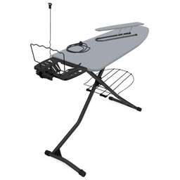 Надёжная металлическая поверхность с отверстиями для пара Съёмный чехол из хлопка с термоустойчивым покрытием Плавно регулируемая высота до 0,9 м Подставка под утюг с термоустойчивыми вставками Кронштейн для провода утюга Полка для белья Переносной подрукавник Электрический соединитель 1,9 м Устойчивые опоры с пластиковыми наконечниками для защиты напольного покрытия Фиксация в сложенном виде Максимальная нагрузка на гладильную поверхность - 25 кг