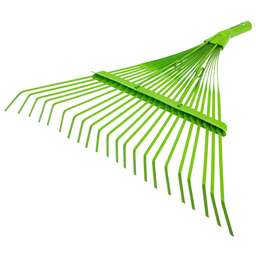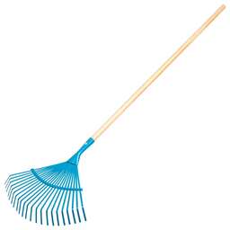 Грабли веерные пластиковые Palisad 61806 с 27 плоскими зубьями и шириной рабочей части 620 мм, с алюминиевым черенком, - садовый инвентарь, предназначенный для уборки мелкого мусора и листьев с газонов и грядок. Плоские зубья эффективно очищают территорию, не повреждая растительность. Грабли поставляются в сборе с черенком.ПреимуществаРабочая часть шириной 620 мм обеспечивает максимальный охват участка, что сокращает время уборки.Грабли изготовлены из эластичного и стойкого к ультрафиолету полипропилена, поэтому прослужат долго.На основании имеются ребра жесткости, повышающие прочность инструмента.Зубья дополнены распоркой для надежной защиты от поломок.